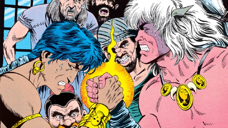 The D&D comics produced by DC came out right at the dawn of 2nd edition Advanced Dungeons & Dragons, so the Time of Troubles which shaped that edition’s Forgotten Realms setting played a major role from the beginning. Characters referred to magic going awry, the gods becoming more distant, and so on. However, as the Forgotten Realms comic draws to a close, the Time of Troubles finally arrives.